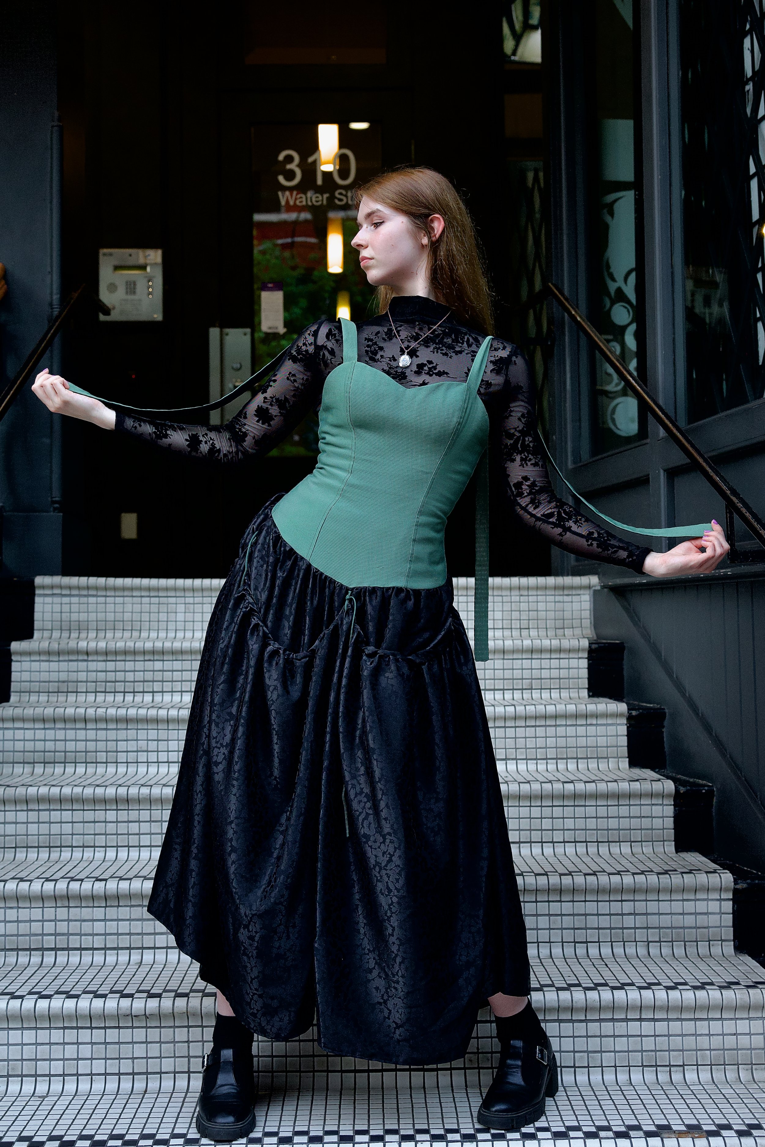 Inspired by Gilded Age fashion and society, the Jade McBride A/W 24 collection reinterprets historical trends with a modern twist, conveying themes of historical society juxtaposed with a renewed sense of contemporary punk and style.