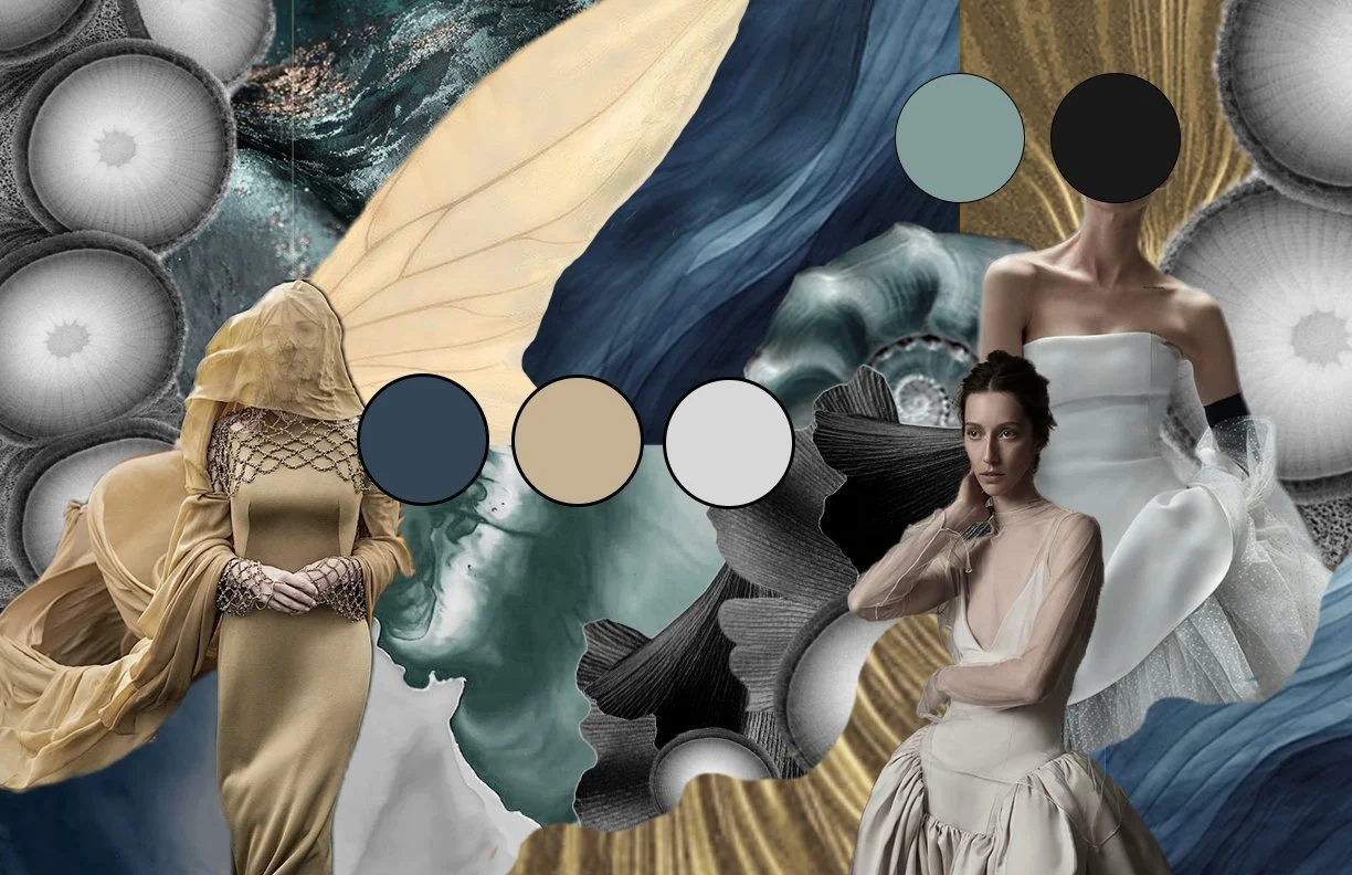 Mood board created in Adobe Photoshop for my Jade McBride Runway Collection Project. View full project here.