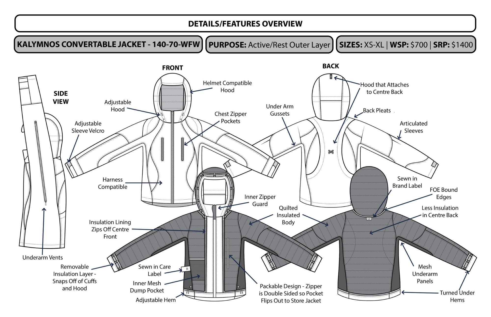 Flats and detail views created in Adobe Illustrator for my Women’s Climbing Wear Collection. View full project here.