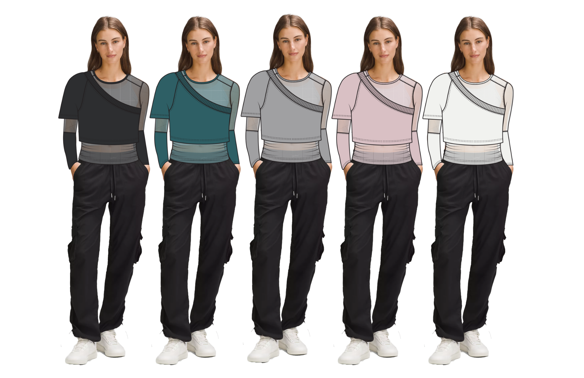 Activewear top illustrations to show colourways for my Lululemon Dance Studio Top project. View full project here.