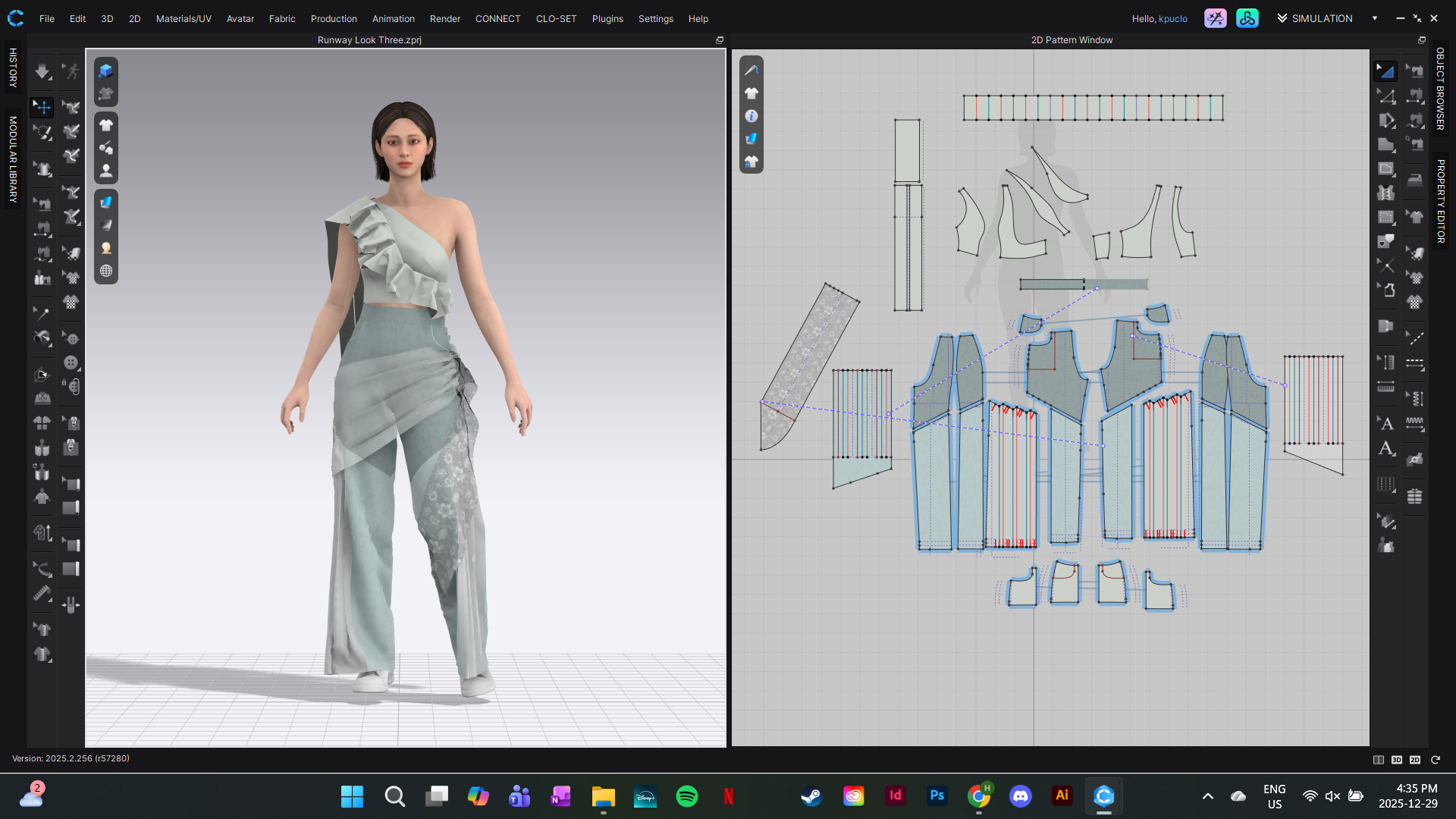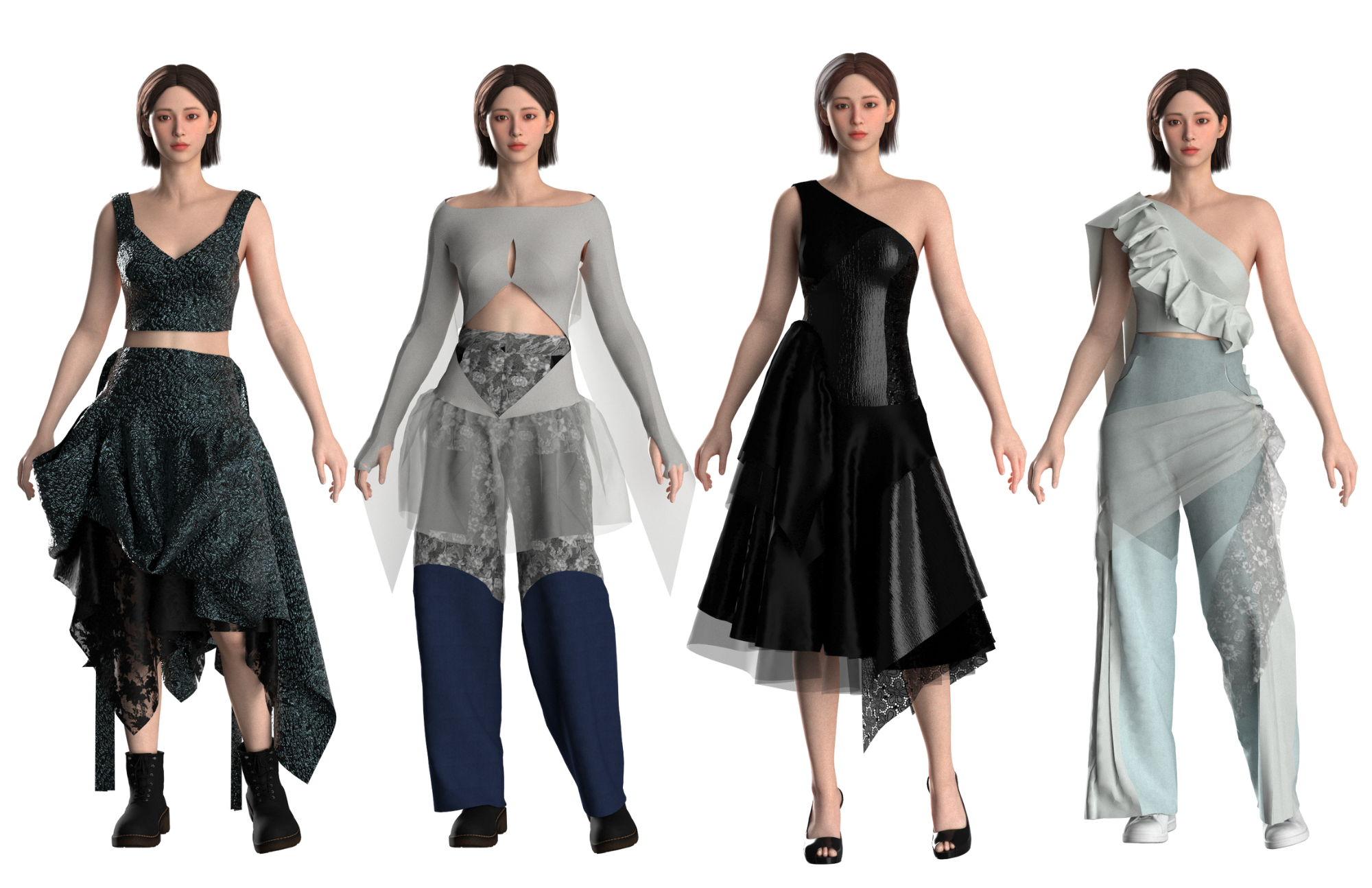 The mood board was created in Adobe Photoshop and the initial 3D concept designs were drafted, simulated, & rendered in CLO3D